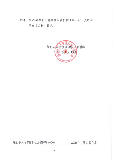 2025年绥化市补贴性培训机构(第二批)及培训职业(工种)目录