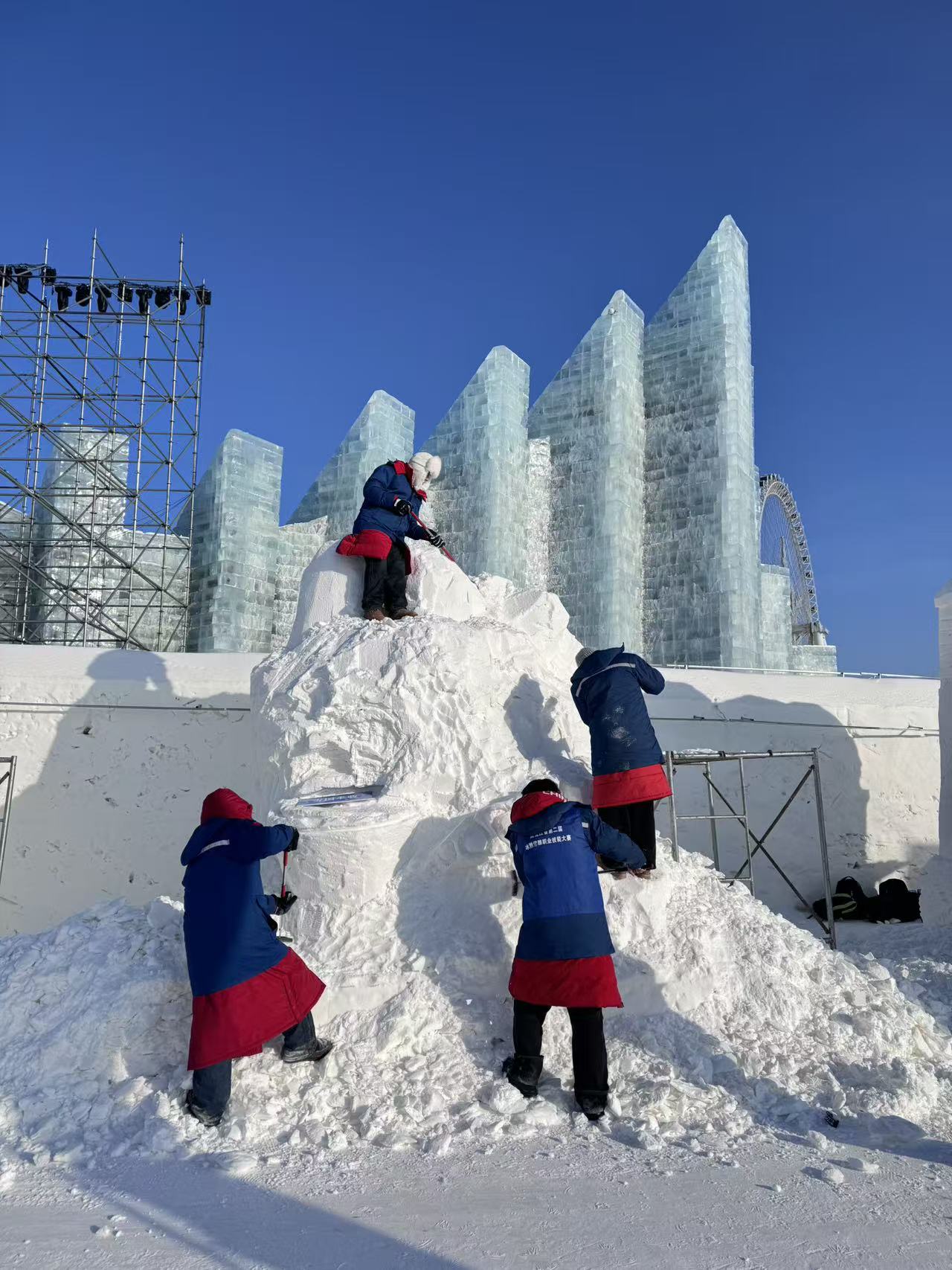 带队指导教师刘岩表示:“《雪国丰收》的创作,是我们将地域文化、时代主题与冰雪艺术语言相结合的一次积极探索。同学们在比赛中展现出的吃苦耐劳、团结协作、精益求精的工匠精神,与作品所传递的丰收喜悦一样令人感动和欣慰。”参赛同学们也纷纷感慨,通过这次大赛,他们不仅提升了雪雕创作的实战技能,更深刻体会到了团队合作的力量和艺术服务社会、歌颂时代的责任与使命。